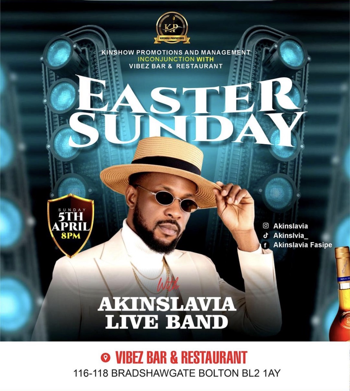 • Easter Sunday Live with Akinslavia Live Band at Vibez Bar & Restaurant Bolton
